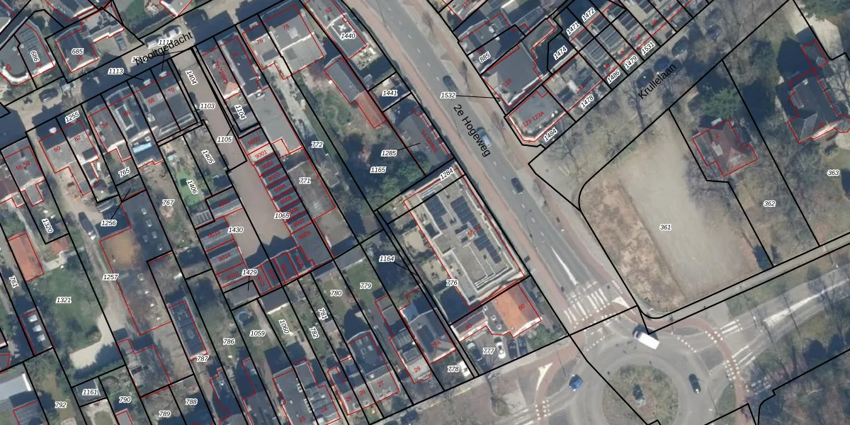 Het perceel waarop 2e Hogeweg 62 staat heeft een oppervlakte van 622 m². Dit is een groot perceel. De perceeloppervlakte wordt geregistreerd door het Kadaster. Gedetailleerde informatie over de maten van dit perceel kunt u vinden in het rapport Kadastrale kaart met maatvoering van 2e Hogeweg 62.