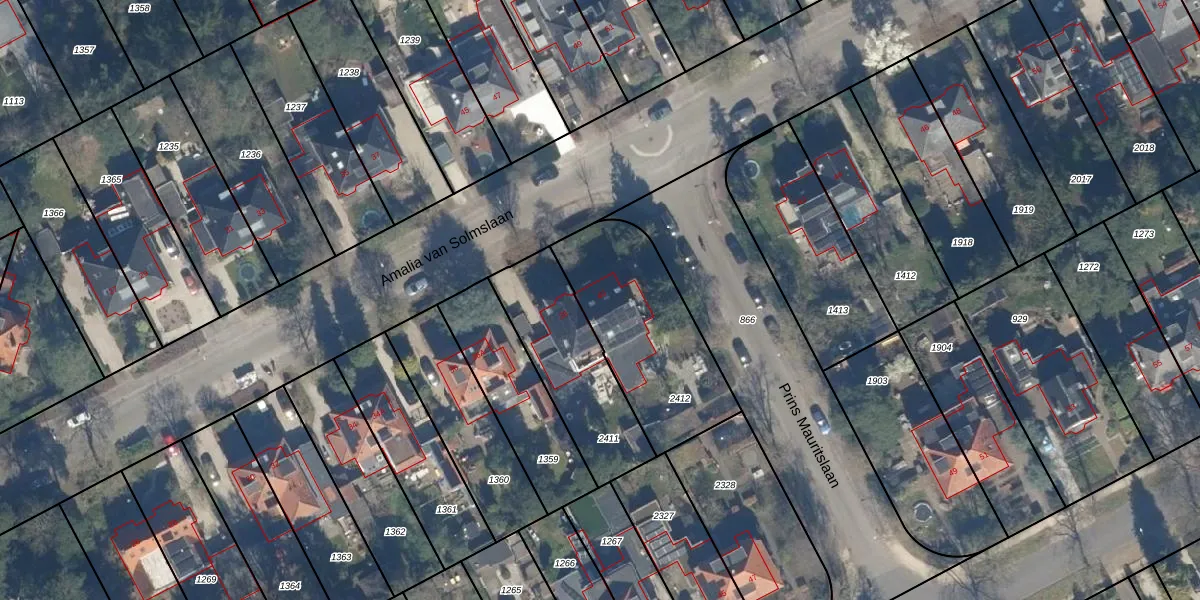 Het perceel waarop Amalia van Solmslaan 40 staat heeft een oppervlakte van 604 m². Dit is een groot perceel. De perceeloppervlakte wordt geregistreerd door het Kadaster. Gedetailleerde informatie over de maten van dit perceel kunt u vinden in het rapport Kadastrale kaart met maatvoering van Amalia van Solmslaan 40.