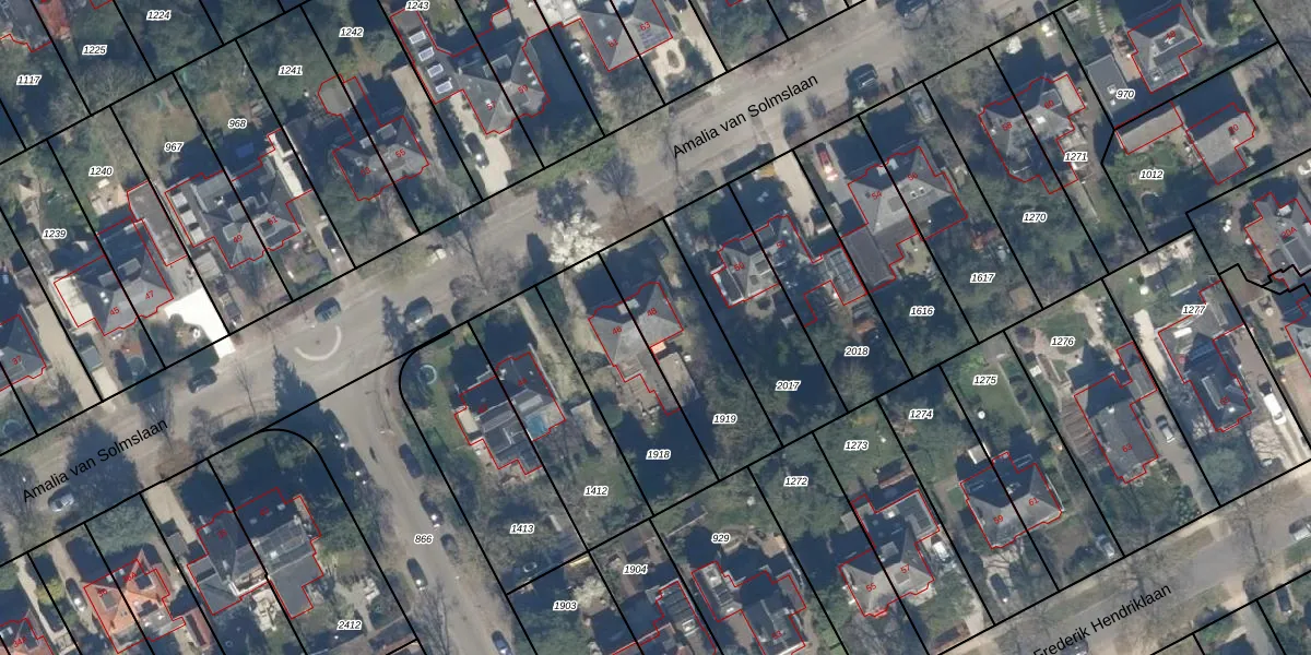 Het perceel waarop Amalia van Solmslaan 48 staat heeft een oppervlakte van 432 m². Dit is een groot perceel. De perceeloppervlakte wordt geregistreerd door het Kadaster. Gedetailleerde informatie over de maten van dit perceel kunt u vinden in het rapport Kadastrale kaart met maatvoering van Amalia van Solmslaan 48.