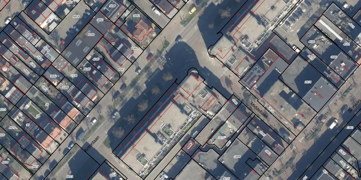 Het perceel waarop Antonlaan 144 staat heeft een oppervlakte van 1550 m². Dit is een zeer groot perceel. De perceeloppervlakte wordt geregistreerd door het Kadaster. Gedetailleerde informatie over de maten van dit perceel kunt u vinden in het rapport Kadastrale kaart met maatvoering van Antonlaan 144.