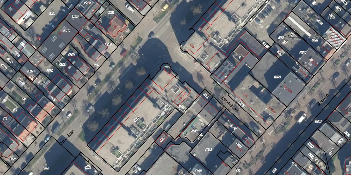 Het perceel waarop Antonlaan 160-B staat heeft een oppervlakte van 1550 m². Dit is een zeer groot perceel. De perceeloppervlakte wordt geregistreerd door het Kadaster. Gedetailleerde informatie over de maten van dit perceel kunt u vinden in het rapport Kadastrale kaart met maatvoering van Antonlaan 160-B.