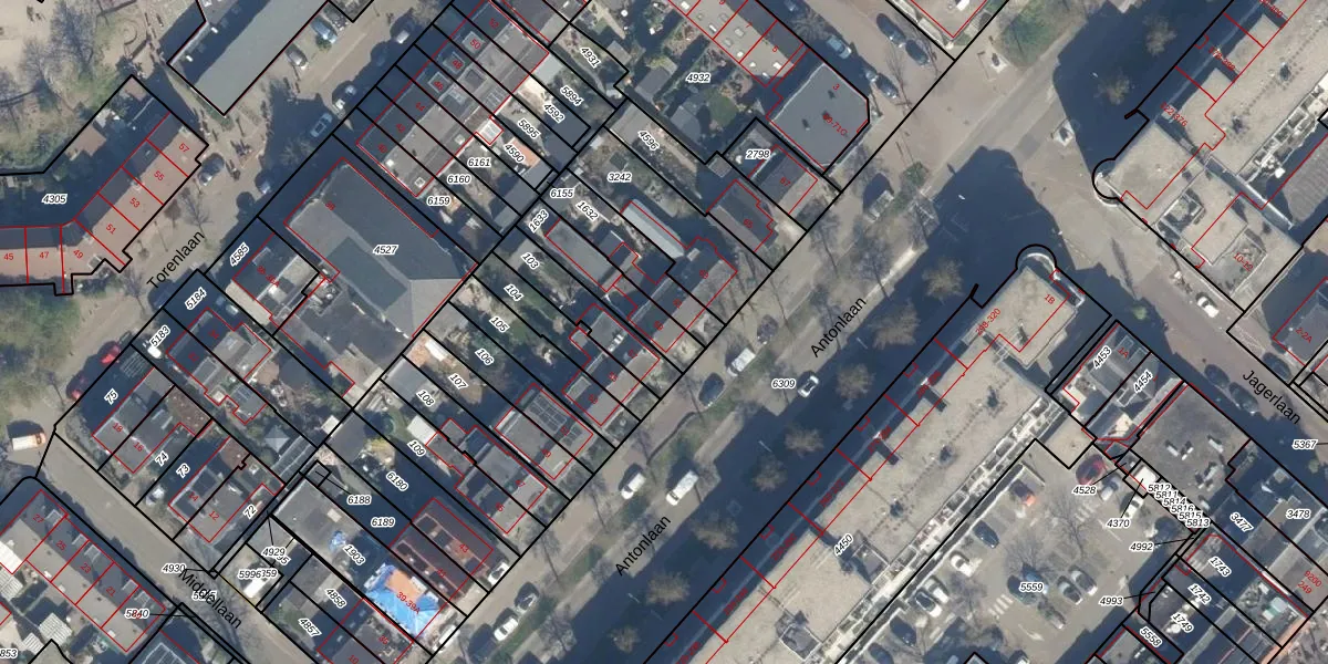 Het perceel waarop Antonlaan 59 staat heeft een oppervlakte van 177 m². Dit is een middelgroot perceel. De perceeloppervlakte wordt geregistreerd door het Kadaster. Gedetailleerde informatie over de maten van dit perceel kunt u vinden in het rapport Kadastrale kaart met maatvoering van Antonlaan 59.