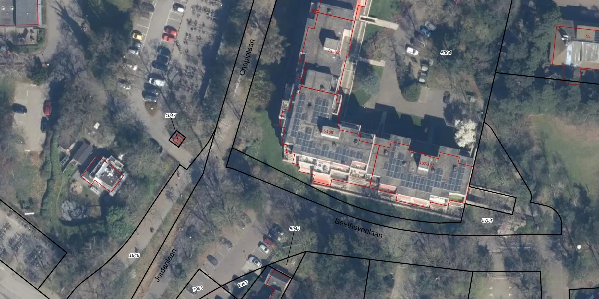 Het perceel waarop Bachlaan 165 staat heeft een oppervlakte van 7175 m². Dit is een zeer groot perceel. De perceeloppervlakte wordt geregistreerd door het Kadaster. Gedetailleerde informatie over de maten van dit perceel kunt u vinden in het rapport Kadastrale kaart met maatvoering van Bachlaan 165.