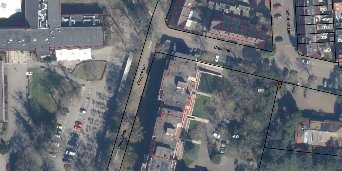 Het perceel waarop Bachlaan 81 staat heeft een oppervlakte van 7175 m². Dit is een zeer groot perceel. De perceeloppervlakte wordt geregistreerd door het Kadaster. Gedetailleerde informatie over de maten van dit perceel kunt u vinden in het rapport Kadastrale kaart met maatvoering van Bachlaan 81.