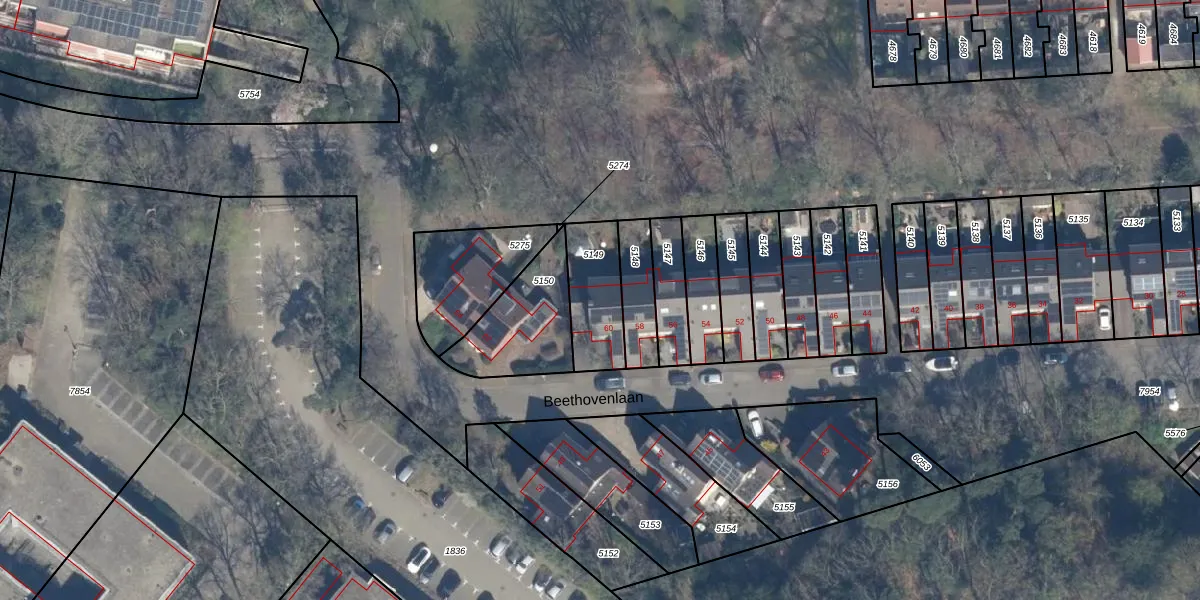 Het perceel waarop Beethovenlaan 60 staat heeft een oppervlakte van 214 m². Dit is een middelgroot perceel. De perceeloppervlakte wordt geregistreerd door het Kadaster. Gedetailleerde informatie over de maten van dit perceel kunt u vinden in het rapport Kadastrale kaart met maatvoering van Beethovenlaan 60.