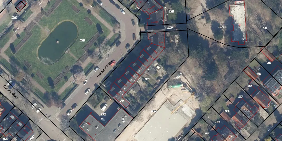 Het perceel waarop Bethaniëplein 4-BIS staat heeft een oppervlakte van 2098 m². Dit is een zeer groot perceel. De perceeloppervlakte wordt geregistreerd door het Kadaster. Gedetailleerde informatie over de maten van dit perceel kunt u vinden in het rapport Kadastrale kaart met maatvoering van Bethaniëplein 4-BIS.