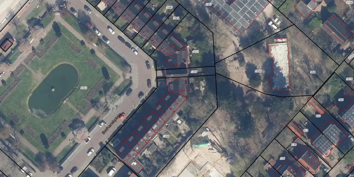 Het perceel waarop Bethaniëplein 7-BIS staat heeft een oppervlakte van 2098 m². Dit is een zeer groot perceel. De perceeloppervlakte wordt geregistreerd door het Kadaster. Gedetailleerde informatie over de maten van dit perceel kunt u vinden in het rapport Kadastrale kaart met maatvoering van Bethaniëplein 7-BIS.