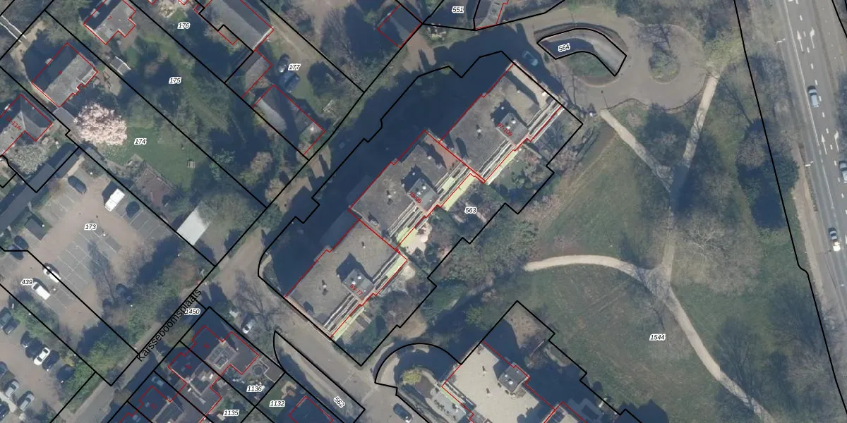 Het perceel waarop het adres ligt is ZEI00-L-563. De afkorting 'ZEI00' staat voor kadastrale gemeente Zeist. Het perceel is met 2669 m² relatief groot. Het gemiddelde ligt in de kadastrale gemeente Zeist op 2184 m². De grootste perceeloppervlakte in de kadastrale gemeente is 1,78 km². De kleinste oppervlakte bedraagt 0 m². Er zijn 24 adressen aanwezig op het perceel. In de Basisregistratie Kadaster (BRK) werden de grenzen van het perceel geregistreerd op 19-09-1997.