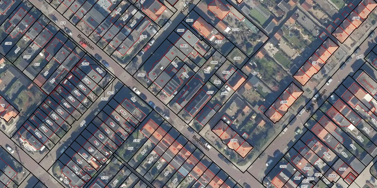Het perceel waarop Bothalaan 16 staat heeft een oppervlakte van 301 m². Dit is een groot perceel. De perceeloppervlakte wordt geregistreerd door het Kadaster. Gedetailleerde informatie over de maten van dit perceel kunt u vinden in het rapport Kadastrale kaart met maatvoering van Bothalaan 16.