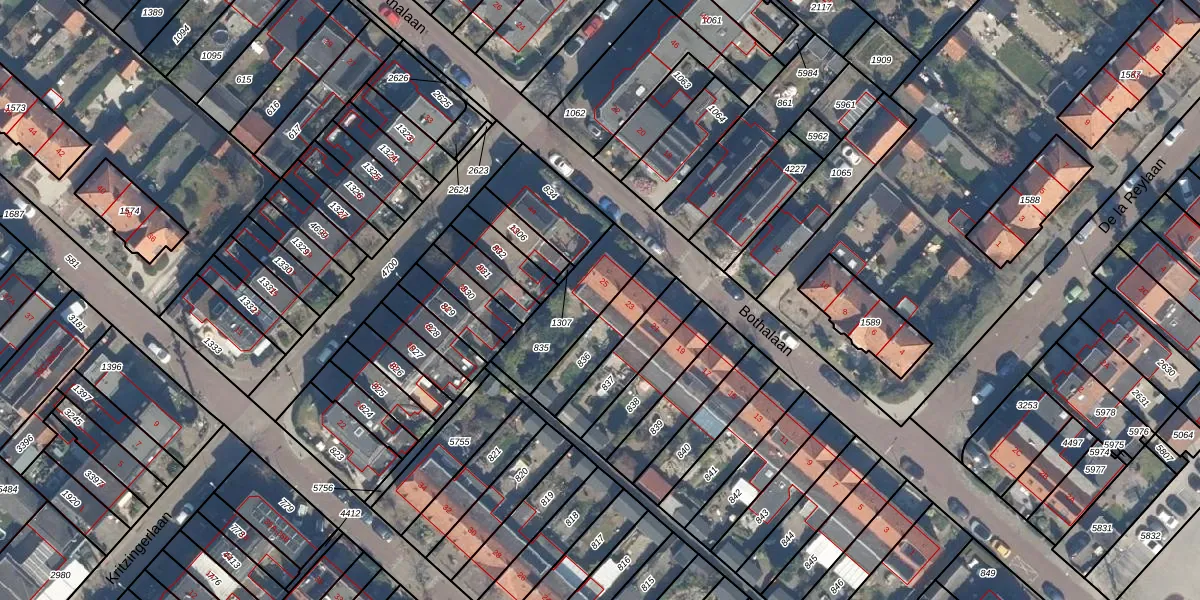 Het perceel waarop Bothalaan 25 staat heeft een oppervlakte van 261 m². Dit is een middelgroot perceel. De perceeloppervlakte wordt geregistreerd door het Kadaster. Gedetailleerde informatie over de maten van dit perceel kunt u vinden in het rapport Kadastrale kaart met maatvoering van Bothalaan 25.