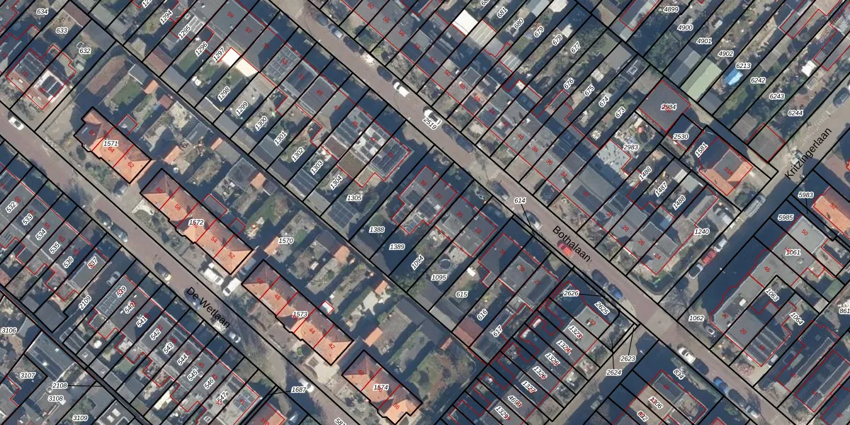 Het perceel waarop Bothalaan 37 staat heeft een oppervlakte van 184 m². Dit is een middelgroot perceel. De perceeloppervlakte wordt geregistreerd door het Kadaster. Gedetailleerde informatie over de maten van dit perceel kunt u vinden in het rapport Kadastrale kaart met maatvoering van Bothalaan 37.