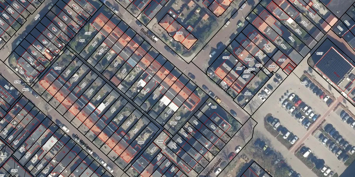 Het perceel waarop Bothalaan 5 staat heeft een oppervlakte van 177 m². Dit is een middelgroot perceel. De perceeloppervlakte wordt geregistreerd door het Kadaster. Gedetailleerde informatie over de maten van dit perceel kunt u vinden in het rapport Kadastrale kaart met maatvoering van Bothalaan 5.
