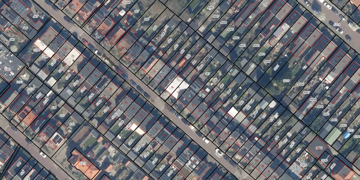 Het perceel waarop Bothalaan 64 staat heeft een oppervlakte van 178 m². Dit is een middelgroot perceel. De perceeloppervlakte wordt geregistreerd door het Kadaster. Gedetailleerde informatie over de maten van dit perceel kunt u vinden in het rapport Kadastrale kaart met maatvoering van Bothalaan 64.
