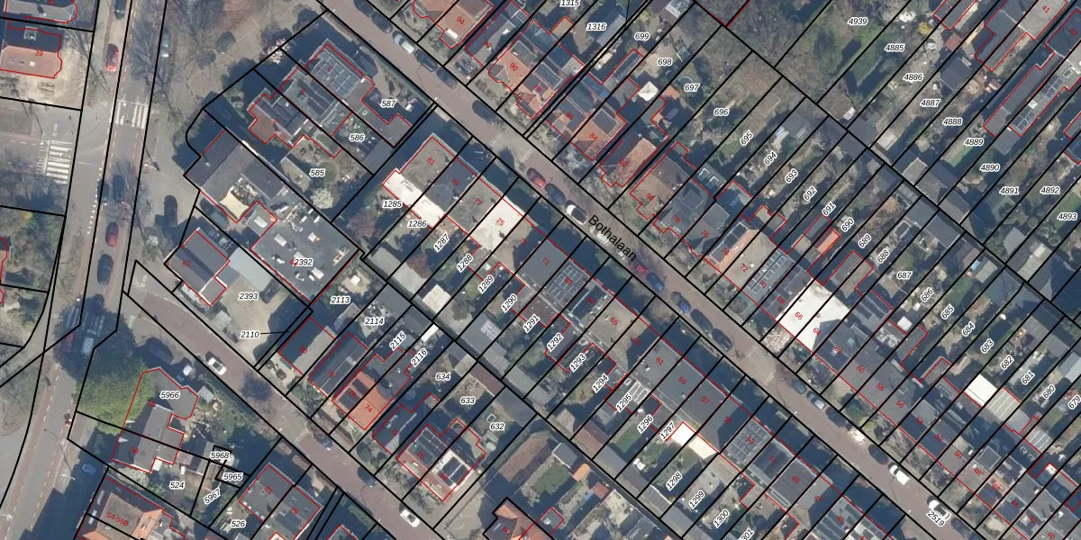 Het perceel waarop Bothalaan 71 staat heeft een oppervlakte van 173 m². Dit is een middelgroot perceel. De perceeloppervlakte wordt geregistreerd door het Kadaster. Gedetailleerde informatie over de maten van dit perceel kunt u vinden in het rapport Kadastrale kaart met maatvoering van Bothalaan 71.