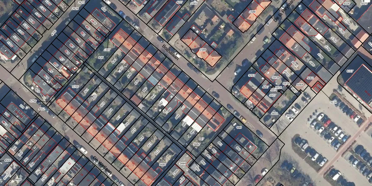 Het perceel waarop Bothalaan 9 staat heeft een oppervlakte van 175 m². Dit is een middelgroot perceel. De perceeloppervlakte wordt geregistreerd door het Kadaster. Gedetailleerde informatie over de maten van dit perceel kunt u vinden in het rapport Kadastrale kaart met maatvoering van Bothalaan 9.