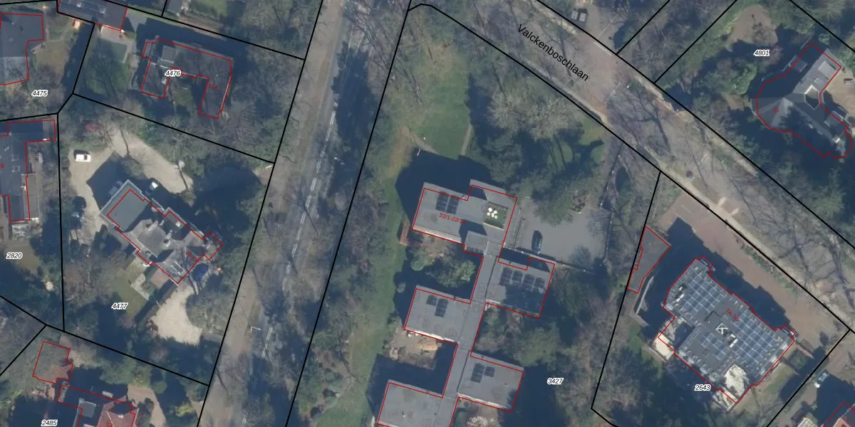 Het adres ligt op het perceel ZEI00-H-3427, dat zich in de kadastrale gemeente Zeist bevindt. Het perceel is met 1,1 ha relatief groot. Het gemiddelde ligt in de kadastrale gemeente Zeist op 2184,2 m². Het grootste perceel in de kadastrale gemeente is 1,78 km². Het kleinste perceel heeft een oppervlakte van 0 m². Er zijn 13 adressen aanwezig op het perceel. De huidige grenzen van het perceel zijn digitaal in de Basisregistratie Kadaster (BRK) geregistreerd op 19-09-1997.