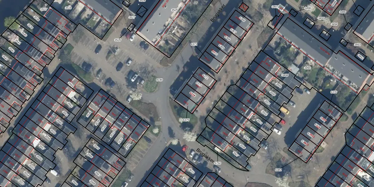 Het perceel waarop Brugakker 3419 staat heeft een oppervlakte van 66 m². Dit is een klein perceel. De perceeloppervlakte wordt geregistreerd door het Kadaster. Gedetailleerde informatie over de maten van dit perceel kunt u vinden in het rapport Kadastrale kaart met maatvoering van Brugakker 3419.