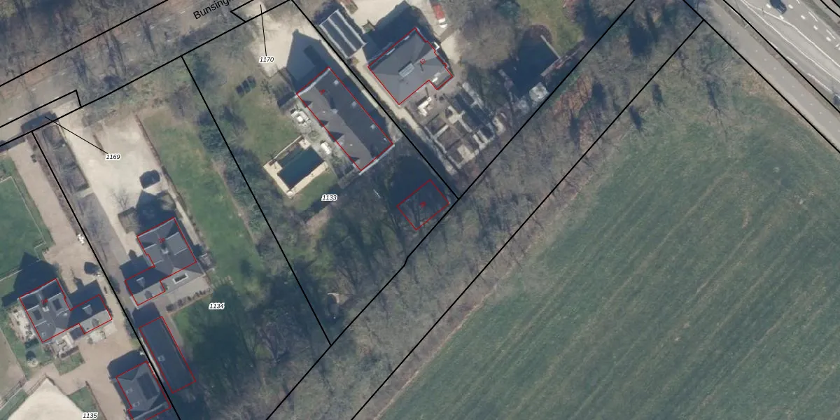 Het perceel waarop Bunsinglaan 2-B staat heeft een oppervlakte van 2600 m². Dit is een zeer groot perceel. De perceeloppervlakte wordt geregistreerd door het Kadaster. Gedetailleerde informatie over de maten van dit perceel kunt u vinden in het rapport Kadastrale kaart met maatvoering van Bunsinglaan 2-B.