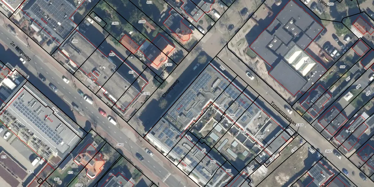 Het perceel waarop Choisyweg 2-C staat heeft een oppervlakte van 920 m². Dit is een groot perceel. De perceeloppervlakte wordt geregistreerd door het Kadaster. Gedetailleerde informatie over de maten van dit perceel kunt u vinden in het rapport Kadastrale kaart met maatvoering van Choisyweg 2-C.