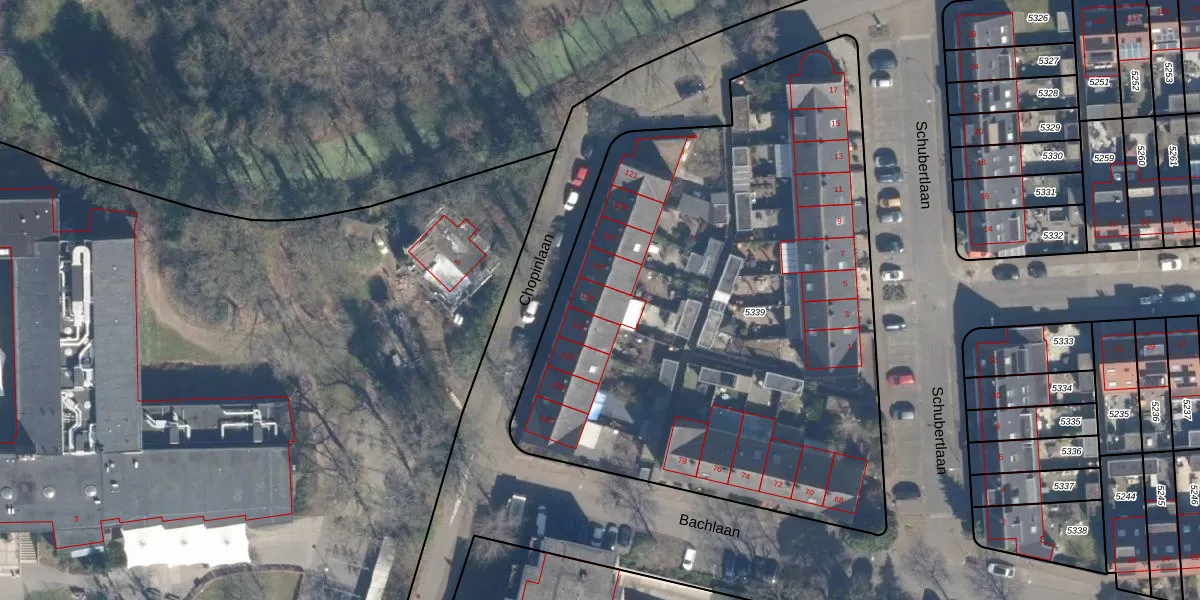 Het perceel waarop Chopinlaan 129 staat heeft een oppervlakte van 3507 m². Dit is een zeer groot perceel. De perceeloppervlakte wordt geregistreerd door het Kadaster. Gedetailleerde informatie over de maten van dit perceel kunt u vinden in het rapport Kadastrale kaart met maatvoering van Chopinlaan 129.