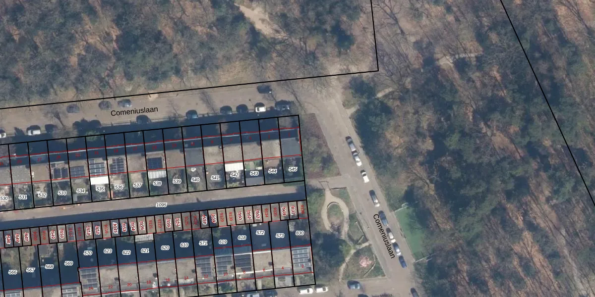 Comeniuslaan 1 is gelegen op kadastraal perceel ZEI00P545. Deze kadastrale aanduiding is uniek en wordt gebruikt door het Kadaster om eigendomsrechten en andere zakelijke rechten vast te leggen. Het perceel maakt onderdeel uit van de kadastrale gemeente Zeist.