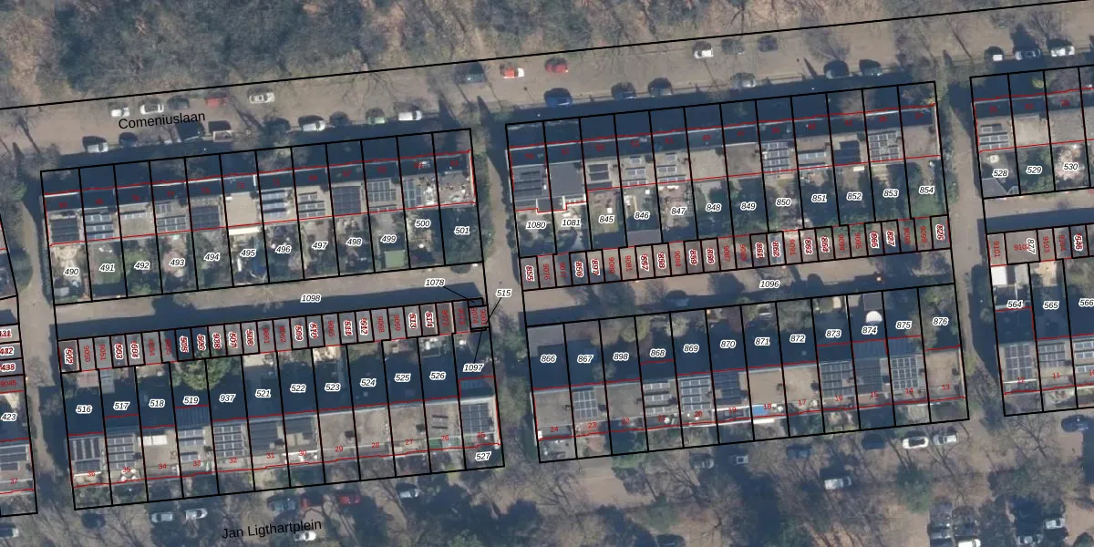 Comeniuslaan 9076 is gelegen op kadastraal perceel ZEI00P1080. Deze kadastrale aanduiding is uniek en wordt gebruikt door het Kadaster om eigendomsrechten en andere zakelijke rechten vast te leggen. Het perceel maakt onderdeel uit van de kadastrale gemeente Zeist.