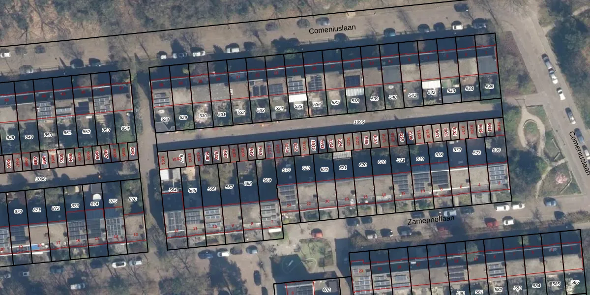 Het perceel waarop Comeniuslaan 9115 staat heeft een oppervlakte van 18 m². Dit is een klein perceel. De perceeloppervlakte wordt geregistreerd door het Kadaster. Gedetailleerde informatie over de maten van dit perceel kunt u vinden in het rapport Kadastrale kaart met maatvoering van Comeniuslaan 9115.