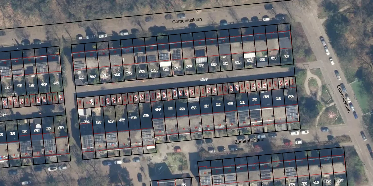 Comeniuslaan 9119 is gelegen op kadastraal perceel ZEI00P554. Deze kadastrale aanduiding is uniek en wordt gebruikt door het Kadaster om eigendomsrechten en andere zakelijke rechten vast te leggen. Het perceel maakt onderdeel uit van de kadastrale gemeente Zeist.