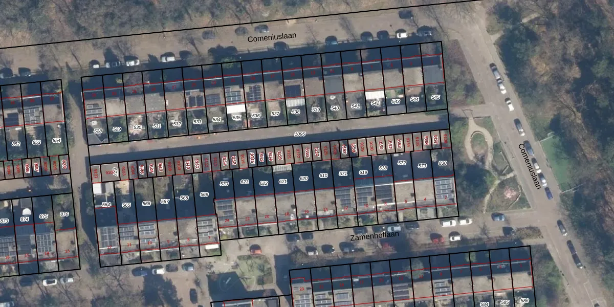 Het perceel waarop Comeniuslaan 9123 staat heeft een oppervlakte van 18 m². Dit is een klein perceel. De perceeloppervlakte wordt geregistreerd door het Kadaster. Gedetailleerde informatie over de maten van dit perceel kunt u vinden in het rapport Kadastrale kaart met maatvoering van Comeniuslaan 9123.
