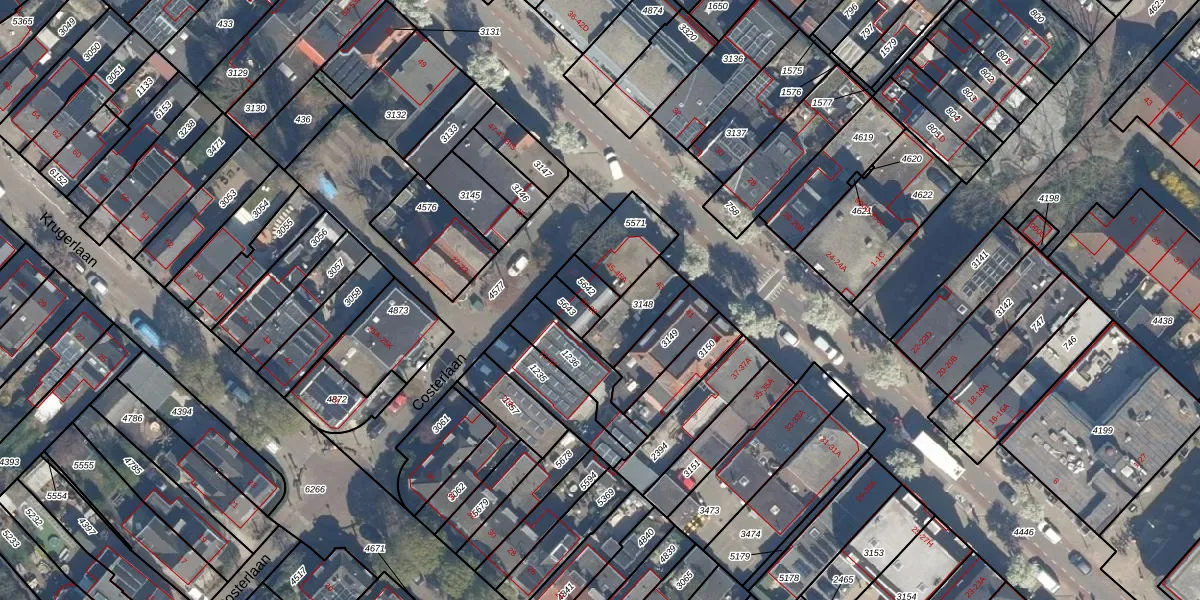 Het perceel waarop Costerlaan 28 staat heeft een oppervlakte van 49 m². Dit is een klein perceel. De perceeloppervlakte wordt geregistreerd door het Kadaster. Gedetailleerde informatie over de maten van dit perceel kunt u vinden in het rapport Kadastrale kaart met maatvoering van Costerlaan 28.