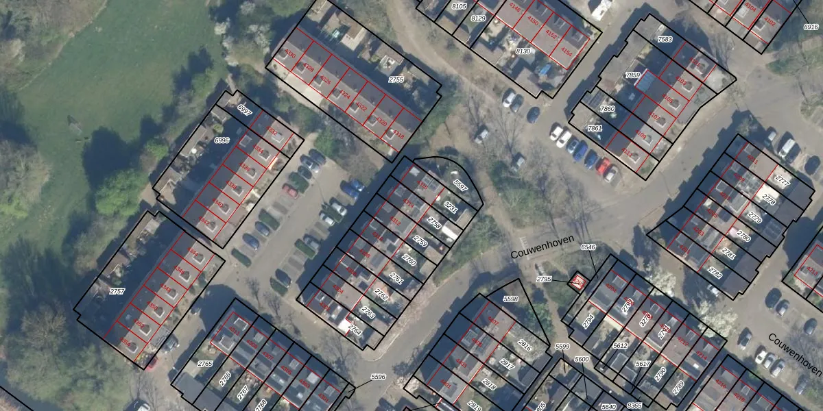 Het perceel waarop Couwenhoven 4314 staat heeft een oppervlakte van 121 m². Dit is een middelgroot perceel. De perceeloppervlakte wordt geregistreerd door het Kadaster. Gedetailleerde informatie over de maten van dit perceel kunt u vinden in het rapport Kadastrale kaart met maatvoering van Couwenhoven 4314.