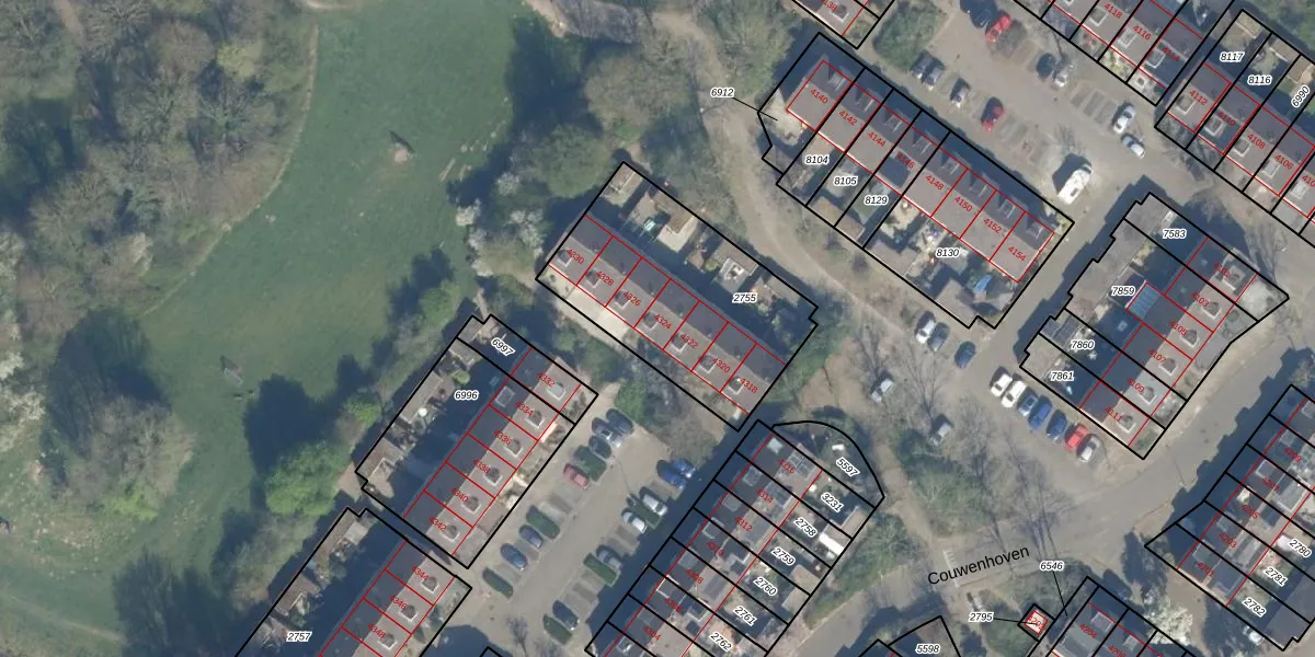 Het perceel waarop Couwenhoven 4324 staat heeft een oppervlakte van 855 m². Dit is een groot perceel. De perceeloppervlakte wordt geregistreerd door het Kadaster. Gedetailleerde informatie over de maten van dit perceel kunt u vinden in het rapport Kadastrale kaart met maatvoering van Couwenhoven 4324.