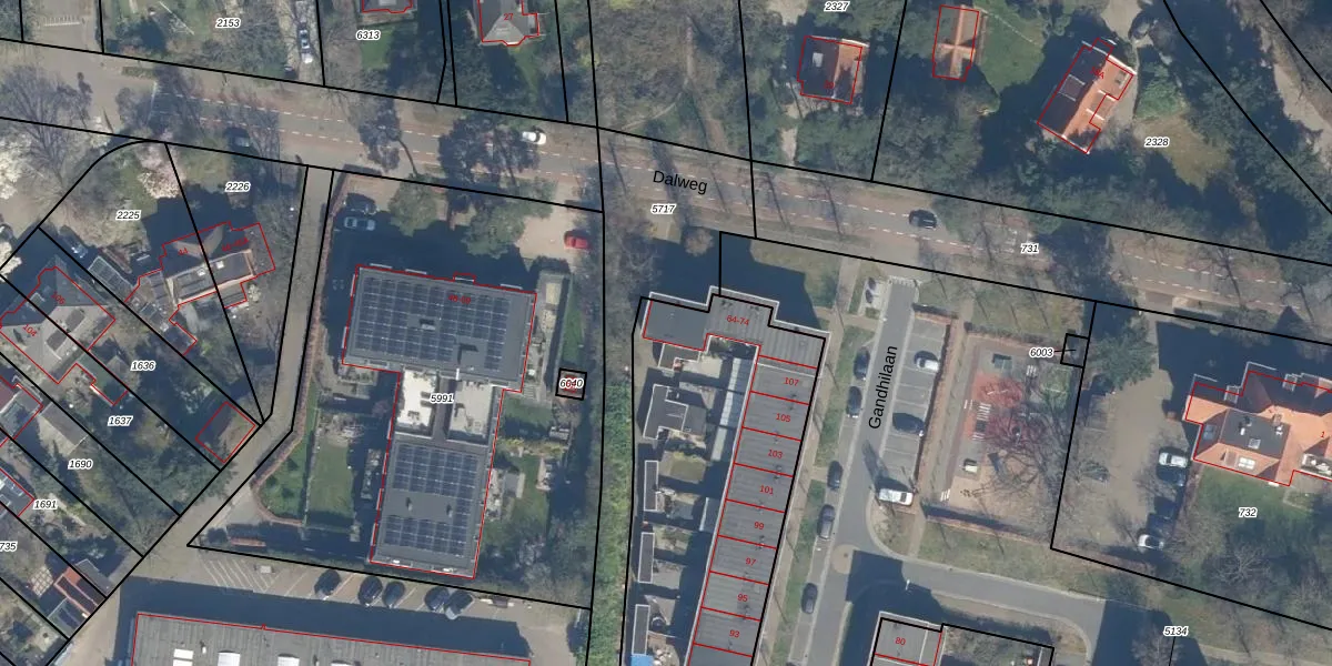 Het perceel waarop Dalweg 64 staat heeft een oppervlakte van 4720 m². Dit is een zeer groot perceel. De perceeloppervlakte wordt geregistreerd door het Kadaster. Gedetailleerde informatie over de maten van dit perceel kunt u vinden in het rapport Kadastrale kaart met maatvoering van Dalweg 64.