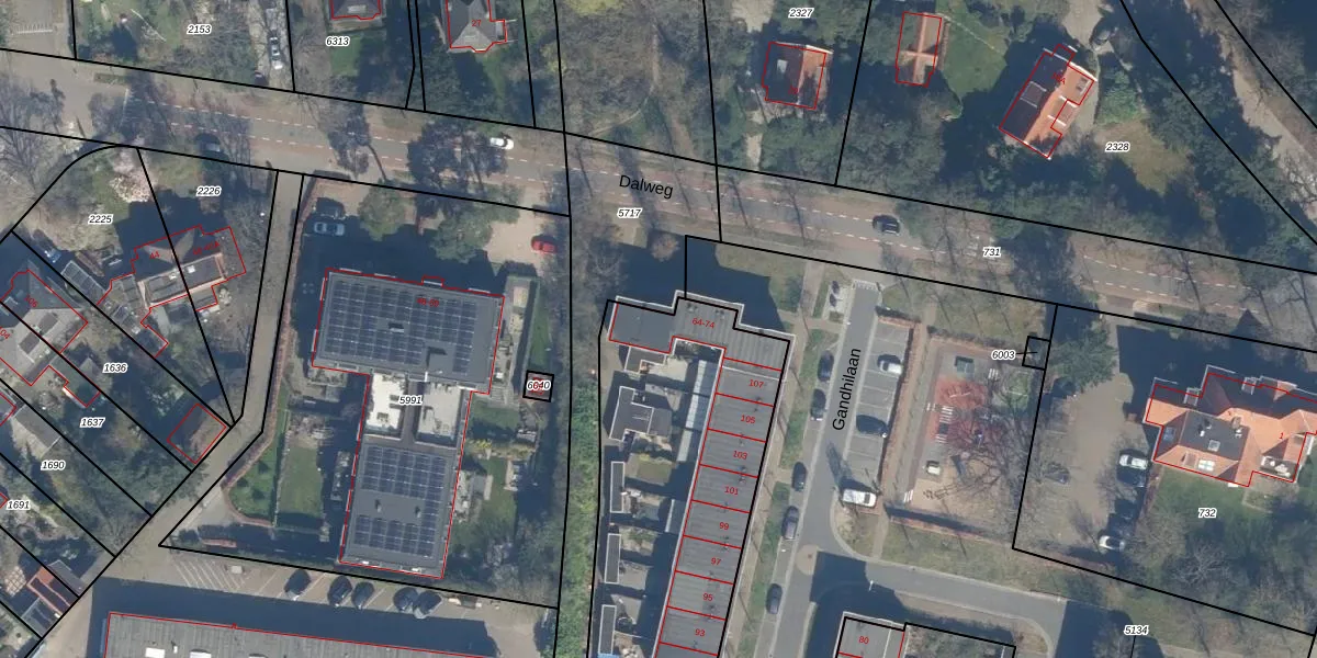 Het perceel waarop Dalweg 74 staat heeft een oppervlakte van 4720 m². Dit is een zeer groot perceel. De perceeloppervlakte wordt geregistreerd door het Kadaster. Gedetailleerde informatie over de maten van dit perceel kunt u vinden in het rapport Kadastrale kaart met maatvoering van Dalweg 74.