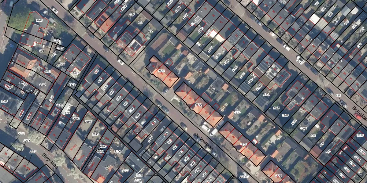 Het perceel waarop De Wetlaan 60 staat heeft een oppervlakte van 225 m². Dit is een middelgroot perceel. De perceeloppervlakte wordt geregistreerd door het Kadaster. Gedetailleerde informatie over de maten van dit perceel kunt u vinden in het rapport Kadastrale kaart met maatvoering van De Wetlaan 60.