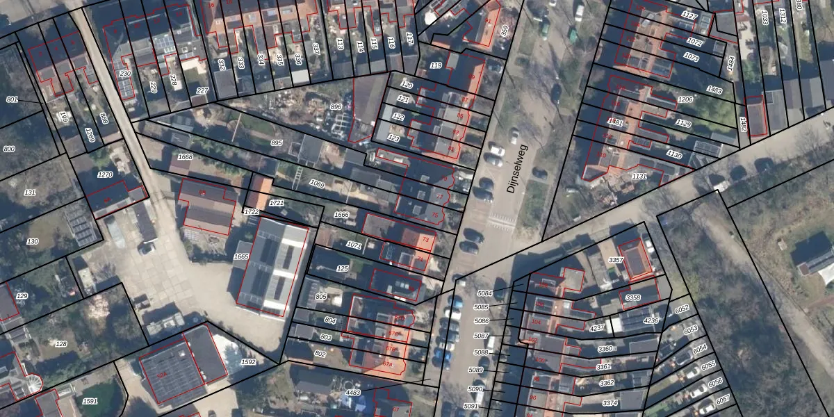 Gebruik de zoekbalk of klik op een perceel voor informatie over de adressen binnen dit perceel.