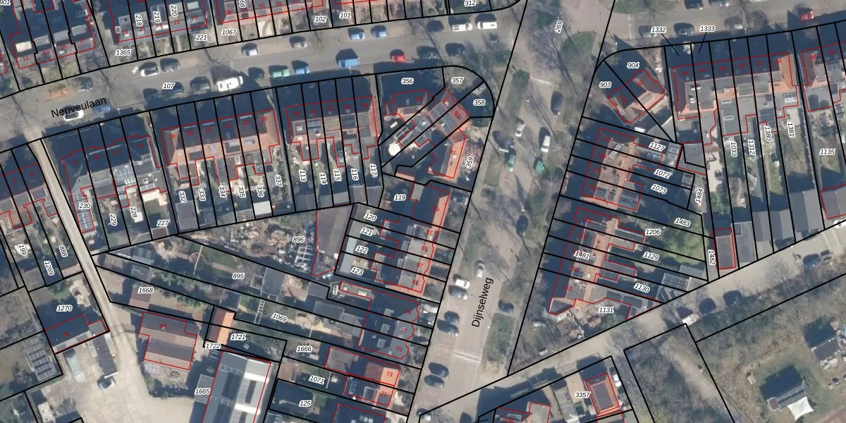 Het perceel waarop Dijnselweg 89 staat heeft een oppervlakte van 189 m². Dit is een middelgroot perceel. De perceeloppervlakte wordt geregistreerd door het Kadaster. Gedetailleerde informatie over de maten van dit perceel kunt u vinden in het rapport Kadastrale kaart met maatvoering van Dijnselweg 89.