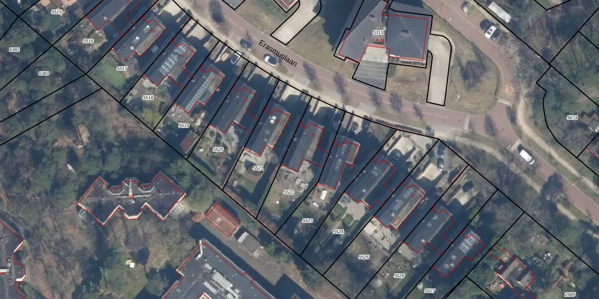 Het perceel waarop Erasmuslaan 11 staat heeft een oppervlakte van 557 m². Dit is een groot perceel. De perceeloppervlakte wordt geregistreerd door het Kadaster. Gedetailleerde informatie over de maten van dit perceel kunt u vinden in het rapport Kadastrale kaart met maatvoering van Erasmuslaan 11.