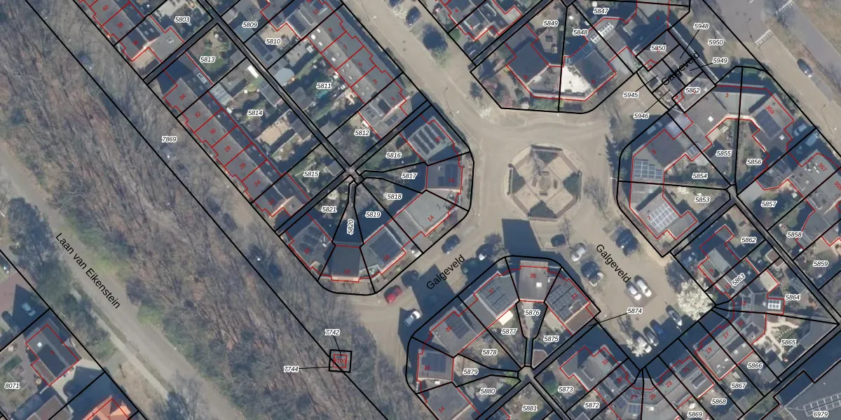 Galgeveld 14 is gelegen op kadastraal perceel ZEI00N5818. Deze kadastrale aanduiding is uniek en wordt gebruikt door het Kadaster om eigendomsrechten en andere zakelijke rechten vast te leggen. Het perceel maakt onderdeel uit van de kadastrale gemeente Zeist.