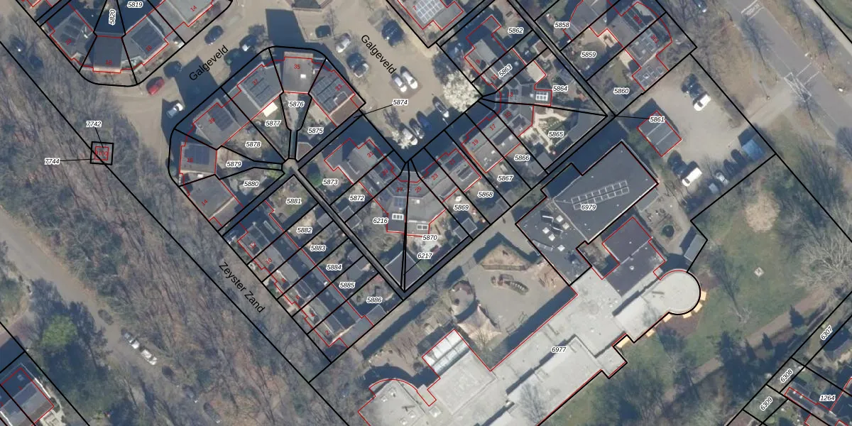 Galgeveld 25 is gelegen op kadastraal perceel ZEI00N5870. Deze kadastrale aanduiding is uniek en wordt gebruikt door het Kadaster om eigendomsrechten en andere zakelijke rechten vast te leggen. Het perceel maakt onderdeel uit van de kadastrale gemeente Zeist.