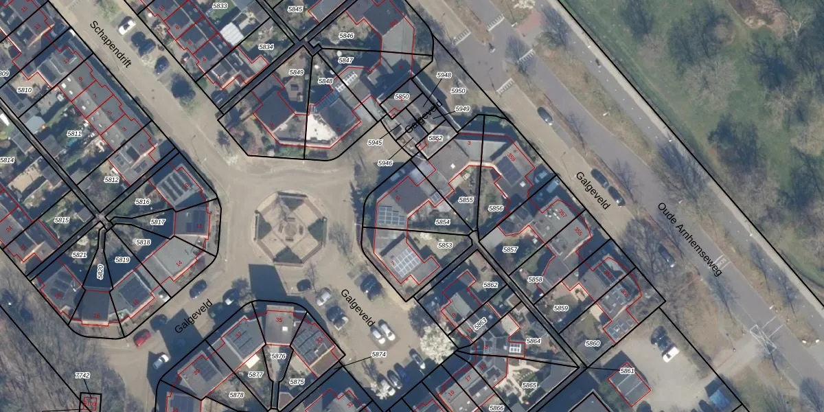 Galgeveld 5 is gelegen op kadastraal perceel ZEI00N5854. Deze kadastrale aanduiding is uniek en wordt gebruikt door het Kadaster om eigendomsrechten en andere zakelijke rechten vast te leggen. Het perceel maakt onderdeel uit van de kadastrale gemeente Zeist.