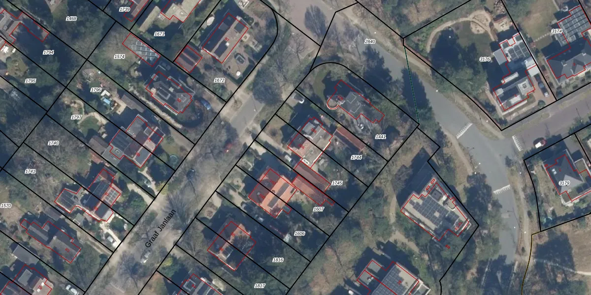 Het perceel waarop Graaf Janlaan 104 staat heeft een oppervlakte van 440 m². Dit is een groot perceel. De perceeloppervlakte wordt geregistreerd door het Kadaster. Gedetailleerde informatie over de maten van dit perceel kunt u vinden in het rapport Kadastrale kaart met maatvoering van Graaf Janlaan 104.