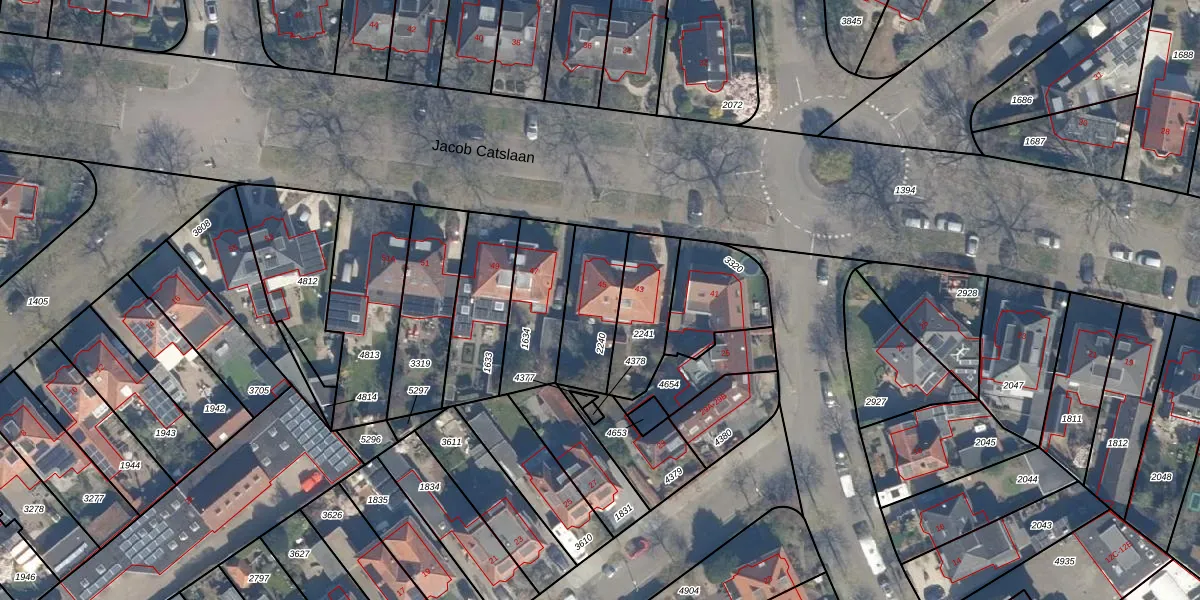 Het perceel waarop Jacob Catslaan 45 staat heeft een oppervlakte van 235 m². Dit is een middelgroot perceel. De perceeloppervlakte wordt geregistreerd door het Kadaster. Gedetailleerde informatie over de maten van dit perceel kunt u vinden in het rapport Kadastrale kaart met maatvoering van Jacob Catslaan 45.