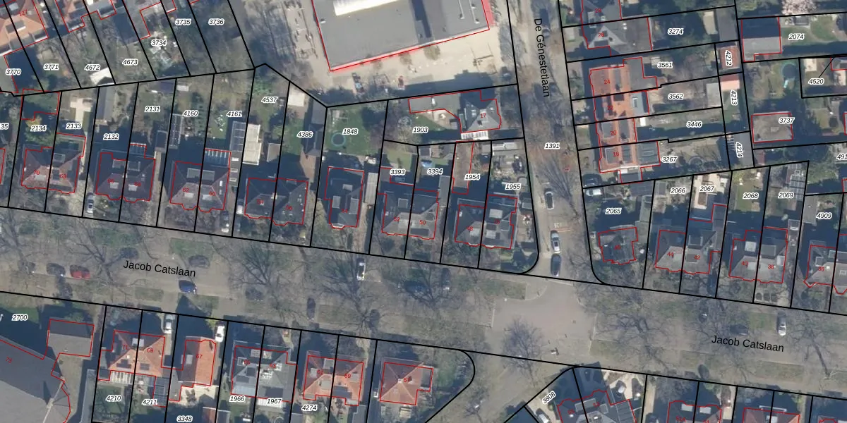 Het perceel waarop Jacob Catslaan 50 staat heeft een oppervlakte van 243 m². Dit is een middelgroot perceel. De perceeloppervlakte wordt geregistreerd door het Kadaster. Gedetailleerde informatie over de maten van dit perceel kunt u vinden in het rapport Kadastrale kaart met maatvoering van Jacob Catslaan 50.