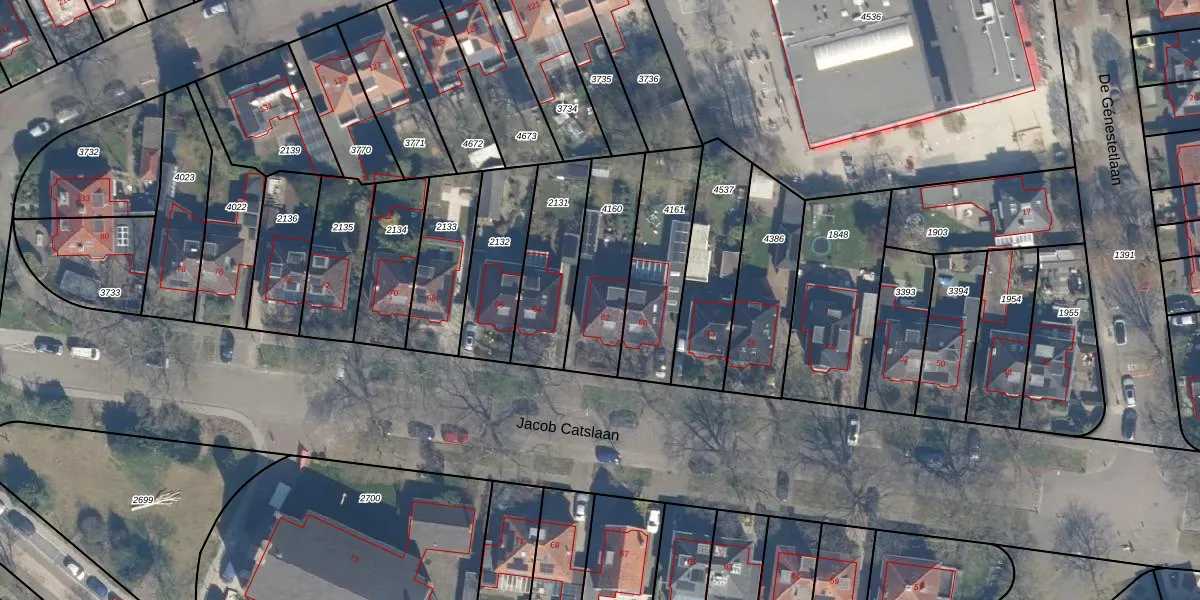Het perceel waarop Jacob Catslaan 62 staat heeft een oppervlakte van 325 m². Dit is een groot perceel. De perceeloppervlakte wordt geregistreerd door het Kadaster. Gedetailleerde informatie over de maten van dit perceel kunt u vinden in het rapport Kadastrale kaart met maatvoering van Jacob Catslaan 62.