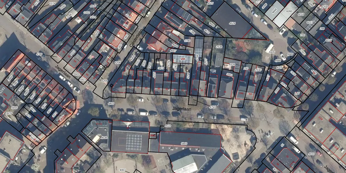 Jagerlaan 34 is gelegen op kadastraal perceel ZEI00H3283. Deze kadastrale aanduiding is uniek en wordt gebruikt door het Kadaster om eigendomsrechten en andere zakelijke rechten vast te leggen. Het perceel maakt onderdeel uit van de kadastrale gemeente Zeist.