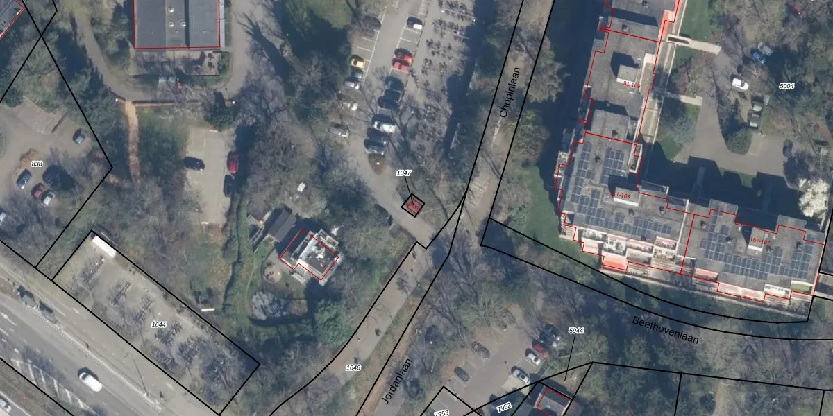 Gebruik de zoekbalk of klik op een perceel voor informatie over de adressen binnen dit perceel.