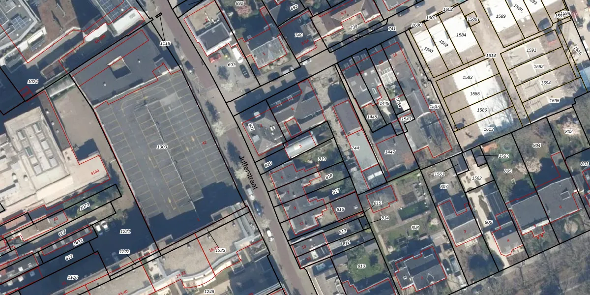 Het perceel waarop Jufferstraat 3 staat heeft een oppervlakte van 163 m². Dit is een middelgroot perceel. De perceeloppervlakte wordt geregistreerd door het Kadaster. Gedetailleerde informatie over de maten van dit perceel kunt u vinden in het rapport Kadastrale kaart met maatvoering van Jufferstraat 3.