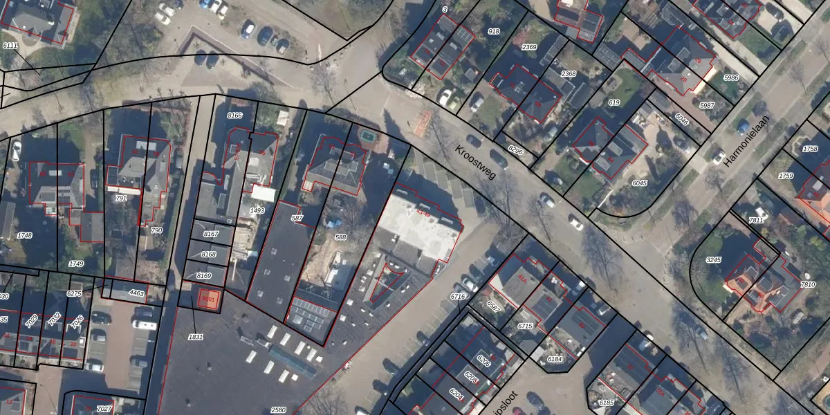 Het perceel waarop Kroostweg 49 staat heeft een oppervlakte van 4390 m². Dit is een zeer groot perceel. De perceeloppervlakte wordt geregistreerd door het Kadaster. Gedetailleerde informatie over de maten van dit perceel kunt u vinden in het rapport Kadastrale kaart met maatvoering van Kroostweg 49.