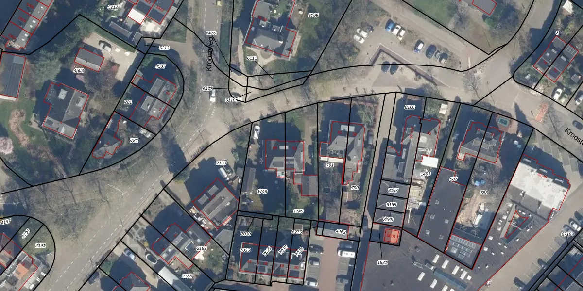 Het perceel waarop Kroostweg 63 staat heeft een oppervlakte van 430 m². Dit is een groot perceel. De perceeloppervlakte wordt geregistreerd door het Kadaster. Gedetailleerde informatie over de maten van dit perceel kunt u vinden in het rapport Kadastrale kaart met maatvoering van Kroostweg 63.
